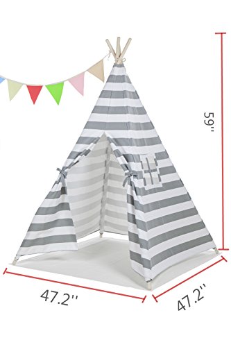 Kids Teepee Tent Size: side length-47.2", top height-59", pole length-70.8". Teepee Weight: -8.3 Lb. Space Roomy Enough For 1-2 Kids ages From 3-7, Comes with vented mesh window, it will clearly stand up daily use by a playgroup or child minder, and survive any child's inquisitive play.