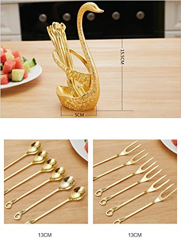 - 5. Package included: a golden swan holder, 3 forks and 3 spoons.
