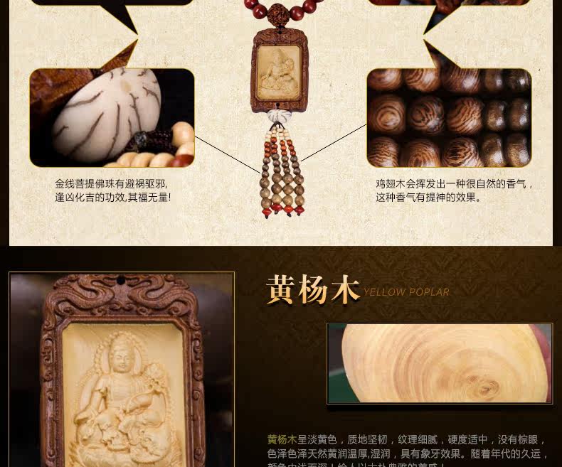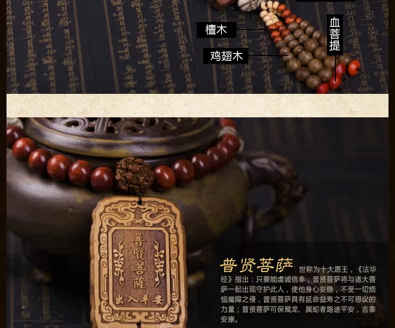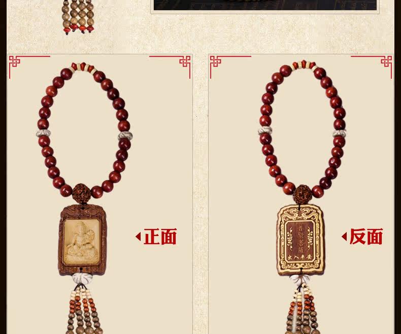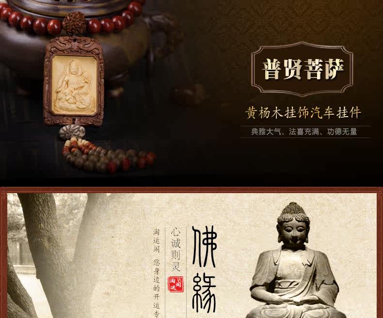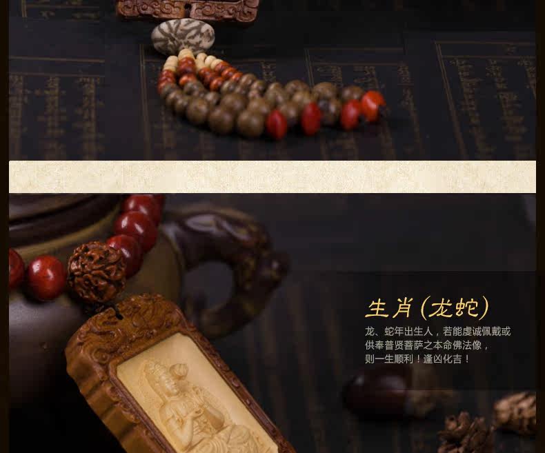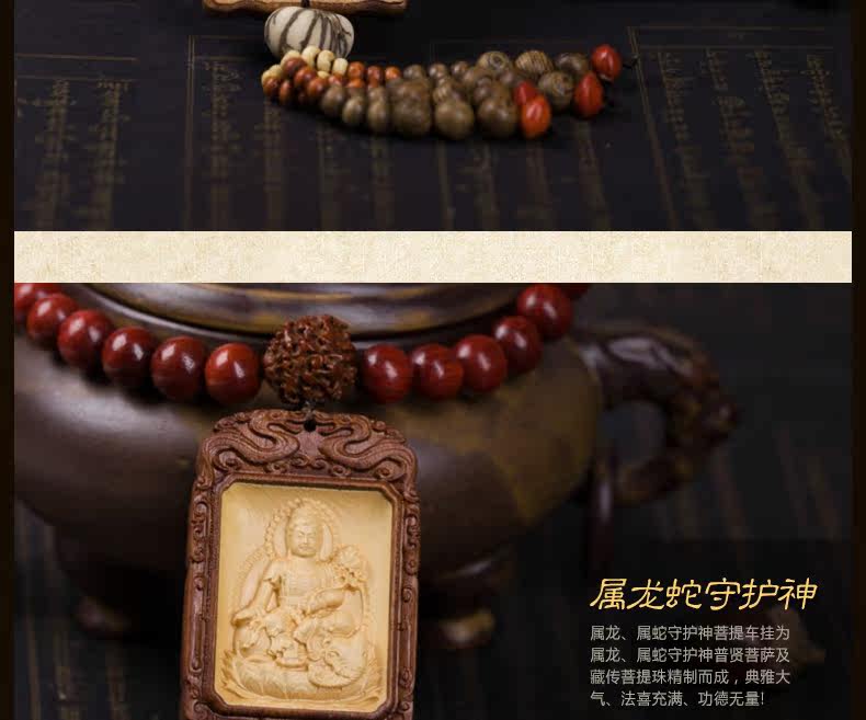 Zodiac Snake/Dragon Buddha开光黄杨木普贤菩萨挂饰汽车挂件/属龙/属蛇本命佛守护神菩提车挂