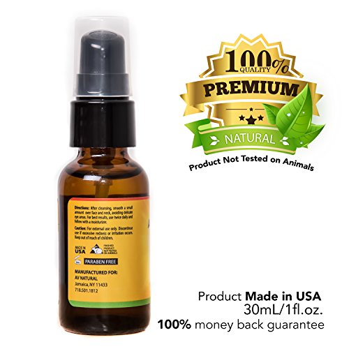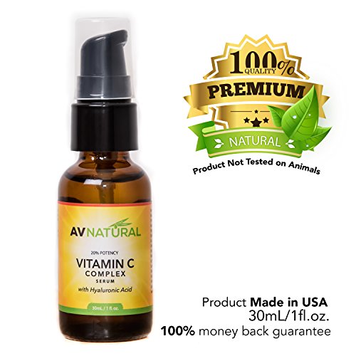 How it works: Hyaluronic Acid is often used with Vitamin C 20% Potency to aide in absorption. Together they form a dynamic duo of much needed moisturizing and collagen stimulating that can decrease naturally with age, environmental toxins and sun damage. AV Natural Vitamin C Serum benefits include: • Eliminates Sun Spots and Age Spots • Moisturizes and Cleans • Reduces Wrinkles • Brings Back a Radiant, Fresh Glow • Gives the Skin a Soft, Silky, Smooth Feel With all of these benefits, you are sure to begin feeling a difference in your skin after using AV Natural Vitamin C Serum with Hyaluronic Acid! Our company is very proud of our skin care products and the care that is taken to manufacture them! We stand behind our Paraben Free, Natural, and "No Animals Tested" policy 100%. If you are looking for a skin care product that causes your friends and family members to ask why your skin looks so good, look no further!Feature