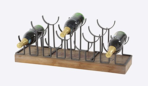 Deco 79 22644 Iron and Wood Seven-Bottle Wine Holder, Black/Brown/Darkbrown