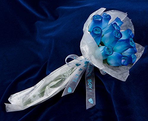 It's A Boy! "Baker's Dozen" Bouquet of 13 Blue Wood Roses