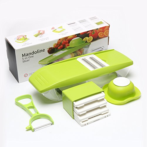 Edofiy Mandoline Slicer-Vegetable Grater Cutter For Potato Cucumber Onion Carrot With 5 Thickness Settings Interchangeable Stainless Steel Blade, Safety Food Holder,Vegetable Peeler