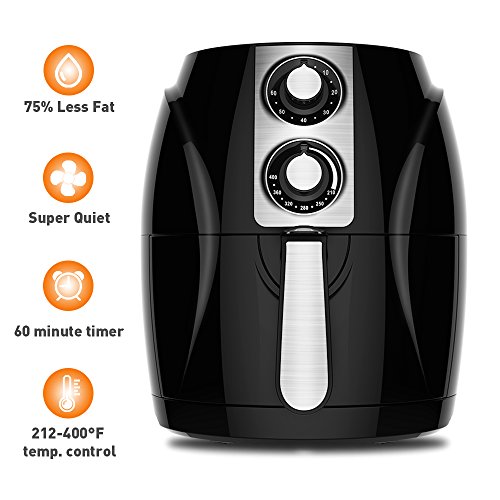 Easy to Use - Become a Master of Cooking in Minutes You don't have to be an experienced cook to use an air fryer. The VIVREAL electric air fryer is incredibly easy to use. It features 210°F~400°F temperature control and 60 minutes timer switch for fast and easy cooking. Simply place your ingredients in the fryer basket, insert the basket into the air fryer, and switch to the proper temperature and time. You can walk away while your food is cooking, and the fryer automatically shuts off when it's done.(Recipe included)