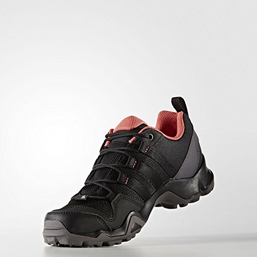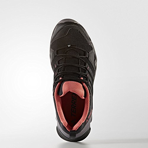 Binding : Shoes Product Description Adidas Terrex AX2R Women's Walking Shoes Built just right for adventurous hikers, these Adidas Terrex AX2R Mid GTX Women's Walking Shoes feature a versatile modern design for multifunctional uses whilst out on the trail. Lightweight Technical Mesh And Synthetic Upper Synthetic overlays have been strategically placed in key positions along the upper of the shoe to offer stability to the foot for a more supported and comfortable wear. Air mesh panels have also been placed in various places along the upper which allow the shoe to breathe, therefore keeping your feet as cool and comfortable as possible. A textile lining is also used on the AX2R which is superbly comfortable against the skin for comfort all walk long. EVA / AdiPrene Midsole An exceptionally lightweight EVA material has been used to create the midsole on this shoe which offers the wearer long lasting cushioning to keep your feet comfortable on longer days and to help you be ready for the unpredictable trail and terrain you may find under your feet. AdiPrene cushioning is also used on this midsole to offer superior cushioning on impact and a women's specific fit. A moulded sock liner has been fitted into the midsole alongside the EVA to offer additional comfort under the foot and for a more secure feel and fit. Traxion Outsole The outsole of the AX2R is made from Traxion Rubber which offers optimal grip in all directions and super high traction. Deep lugs have also ben used to offer additional grip and stability making this shoe superb for tackling various terrain you will face on your trail runs. 0