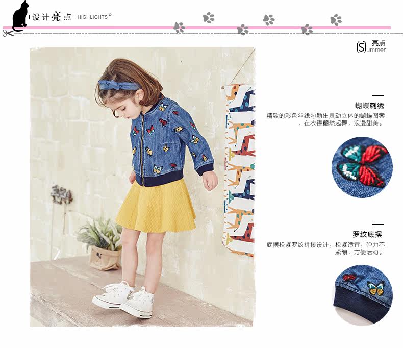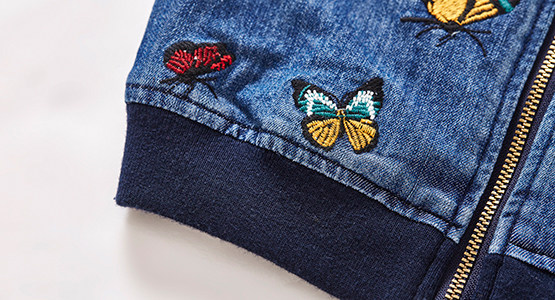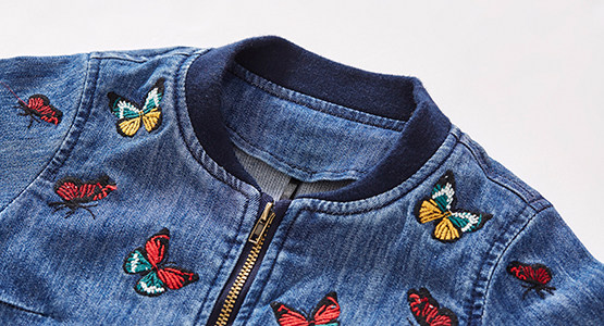 精致的彩色丝线勾勒出灵动立体的蝴蝶图案,在衣襟翩然起舞,浪漫甜美。