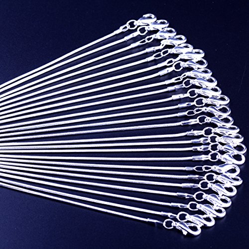 24pcs 20 Inch 925 Silver Plated 1.2mm DIY Snake Chain Charms Shining White Brightening Link Necklace With Lobster Clasps for Jewelry Making (20 inch, Shining White Brightening)