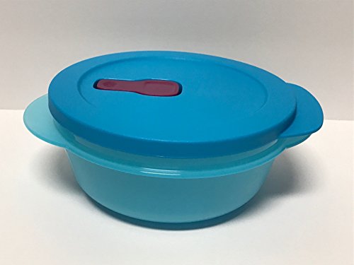 Tupperware CrystalWave Plus Stainguard 2 1/2 cup Container in Cool Aqua & Rhubarb