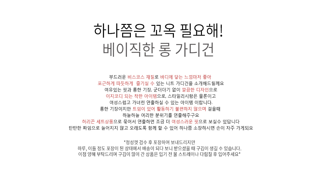 ※ 블랙컬러는 특성상 물빠짐이 있을수 있으니 꼭 ! 옷에 맞는 세탁법으로 세탁한 후 착용바랍니다.
