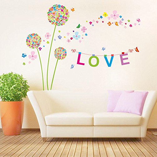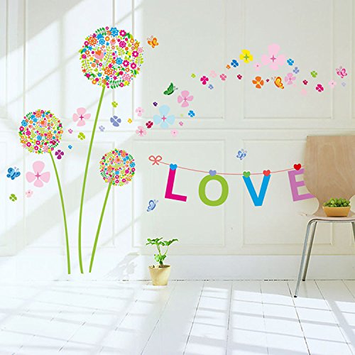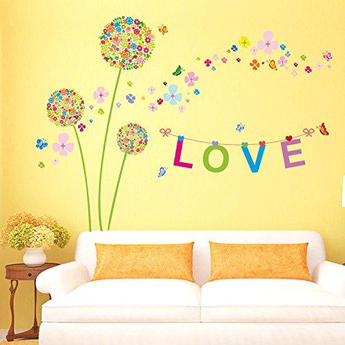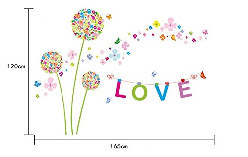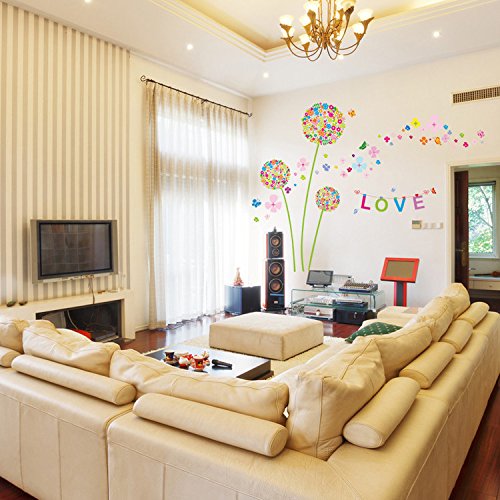 Ferris Store Colorful Dandelion Wall Decor PVC Removable Living Room Bedroom TV Background Decorations Wall Stickers 65x47"