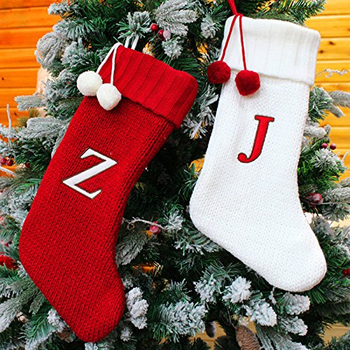 DecentGadget Knit Christmas Stocking Holder Christmas Gift Bag Tree Hanging Decorations (Red)