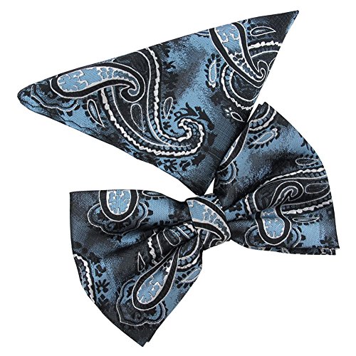 (Absolute Stores)/Accessories/Ties/DIRECT FROM USA/Absolute Stores Blue Black Paisley Bandbow Hanky Set