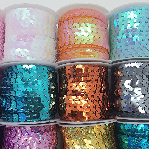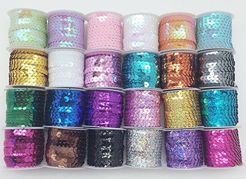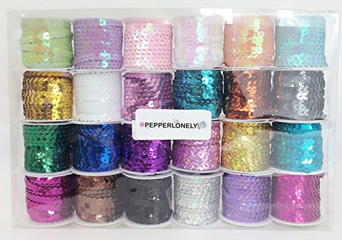 PEPPERLONELY Brand 24 Rolls Mixed 24 Colors Flat Sequin Trim, 6mm(1/4 Inch)