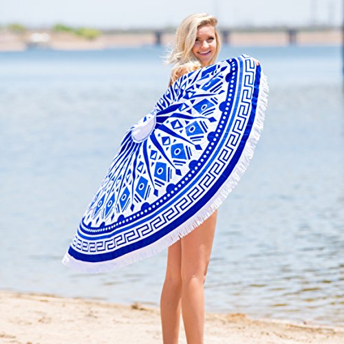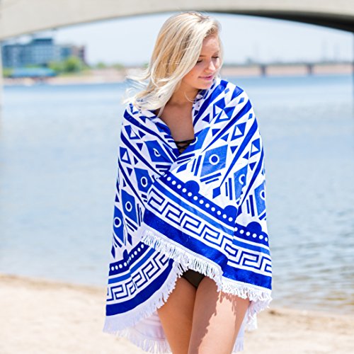 Buir Colore Collection Microfiber Round Beach Towel - 5 feet (60 inches) (Blue Spark)