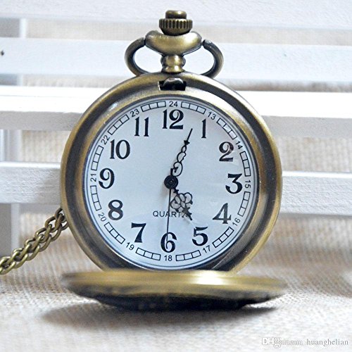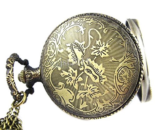 -. Feature : Motorcycle Pocket Watch with Bronze Tone Metal Case / Case diameter: 4.8cm (1.89 inch); Case Thickness: 15mmm (0.59 inch) / Chain Length: 14 inches / Arrives in white gift box ready to gift. / Material: Alloy; Clock Movement: Quartz