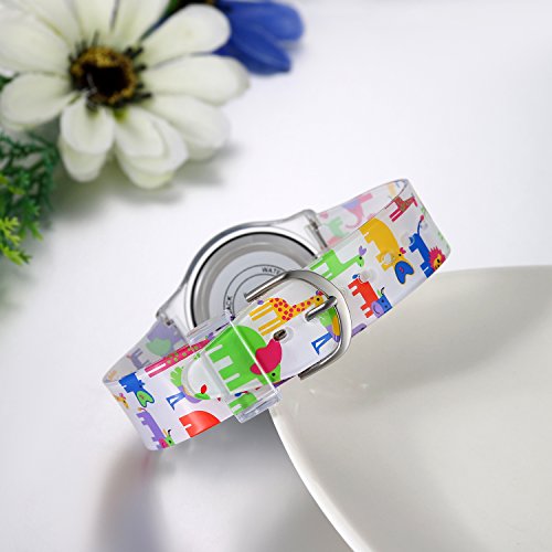 -. Feature : Japan Citizen7T35 Quartz movement with analog display / Features round plastic dial and silicone band, cute animal cartoon pattern strap, buckle closure / Cute cartoon design, every watch has their unique style. Each cartoon image is lively and interesting. / Eco-Friendly Material, full compliance with European environmental standards / Water Resistant to 30M: withstands rain and splashes of water, but not showering or submersion.