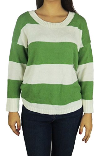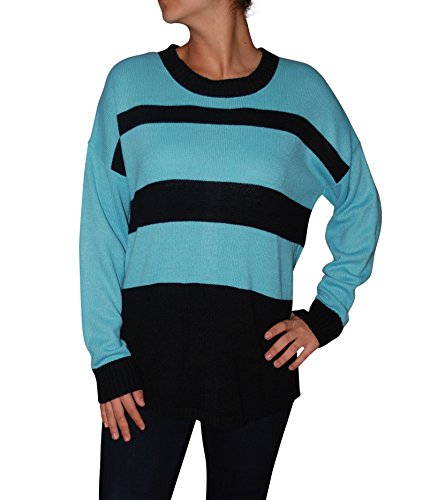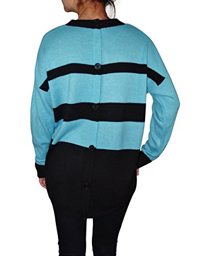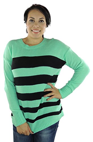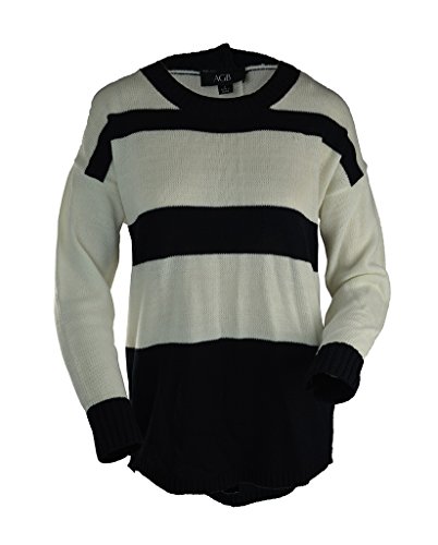 This cozy pullover sweater by AGB has elements of style with its loose fit and decorative stripes. Button up the back complete the look.
