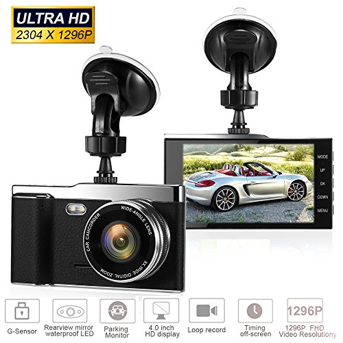 Full HD 2K 1296P Dash Cam 4.0 Inch Screen Car DVR 170 Degree Wide Lens Angle Dash Camera Recorder Support ADAS, Night Vision, WDR, Parking Guard, Loop Recording (Black)