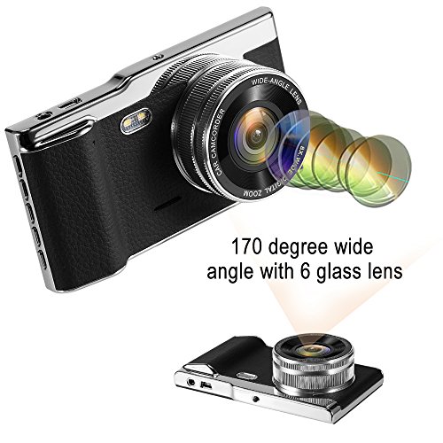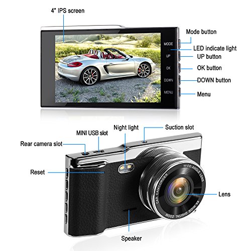 4.0 INCH 170° IPS WIDE SCREEN-Gives a nearly 180° angle recording through the F1.6 large lens, 6 glass 12 mega long focal length pixel lens without fish eye distortion, it can cover 5 lanes,you could see a clear image even on lateral side that is almost in line with the front wheels.