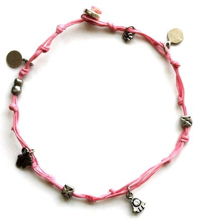 -. Title : Pink Ankle Bracelet with Good Luck & Protection Charms
