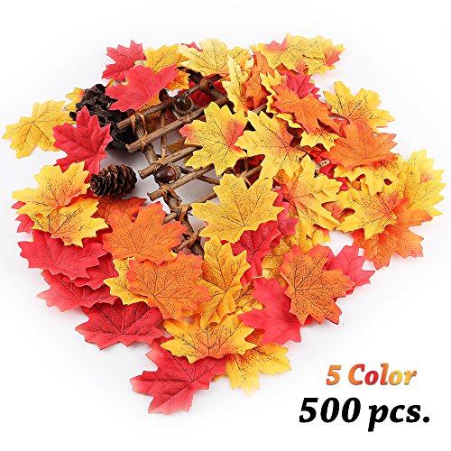 COLORFUL: Total 500pcs,5colors,each color has 100pcs.Different color different mood.Assorted mixed fall colored silk maple leaves.