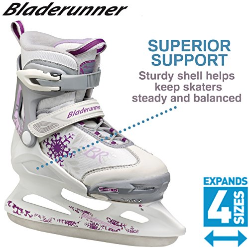 Studio : Bladerunner Publisher : Bladerunner Binding : Misc. Product Description The Bladerunner Micro Boys Ice Skates expand up to four sizes to accommodate his growing feet. They adjust at the push of a button and display large size indicators so it's easy to see when he finds the perfect fit. The liner has comfort padding that is attached to the shell and the molded cuff flexes with his movement, delivering stability and support. Micro adjusts up full sizes, following their growth spurts, continually personalizing their changing needs. The Bladerunner Micro Boys Ice Skates offer the reliable performance to control their skate, secure firm closure and perfect fit, great all day comfort and generous warmth - ideal to provide a positive first experience on the ice and cultivate a passion for ice skating for years to come. Carbon steel blades give great dynamics to the skating needs of young skaters. Features: Reinforced toe Skill Range: Beginner - Intermediate, Model Year: 2017, Product ID: 408570, Model Number: 0G144200 100 12J, GTIN: 0885315902634, Blade: Carbon steel, Outsole Material: Lightweight synthetic, Recommended Use: Recreational, Lining Material: Padded velvet including tongue, Tongue: Padded 0