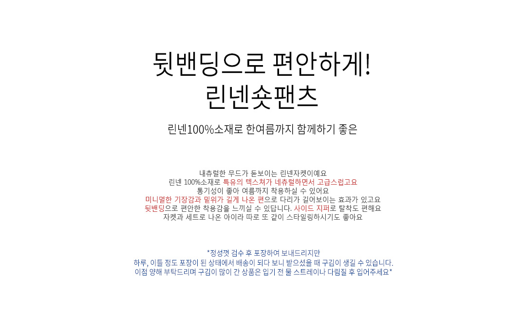 | 소재(Material) | 린넨(linen/)100% | |