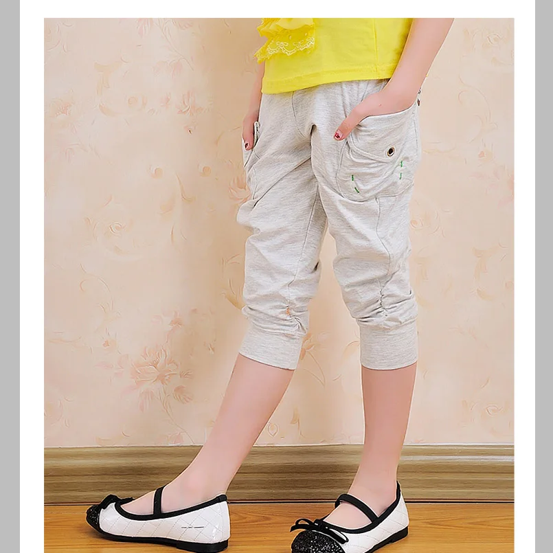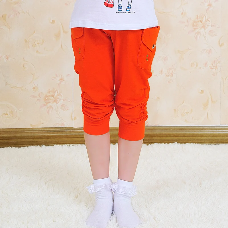 Girls Summer Pants Casual Children Short Trousers Brand Infants Calf-length Pants Kid Clothing 4 6 7 8 9 10 12 14 Solid Trousers