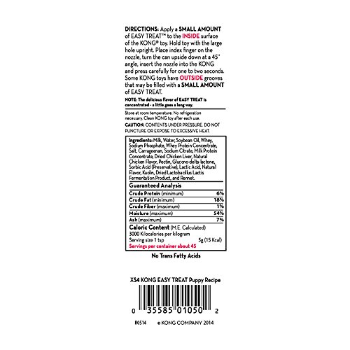 -. Binding : Misc. -. Brand : KONG -. Feature : Irresistible and delicious chicken liver flavor that is gentle on puppy tummies / Easy to dispense as a convenient no mess stuffing solution / Great for stuffing into KONG Puppy rubber toys for extended play / Made in the USA / Available in two sizes: 8 oz. and 14 oz. -. Label : KONG -. Manufacturer : KONG -. MPN : 3213.PARENT -. PackageQuantity : 1 -. PartNumber : 3213.PARENT -. ProductGroup : Pet Products -. ProductTypeName : PET_SUPPLIES -. Publisher : KONG -. Studio : KONG -. Title : KONG Puppy Stuff'N Treat