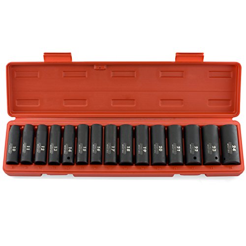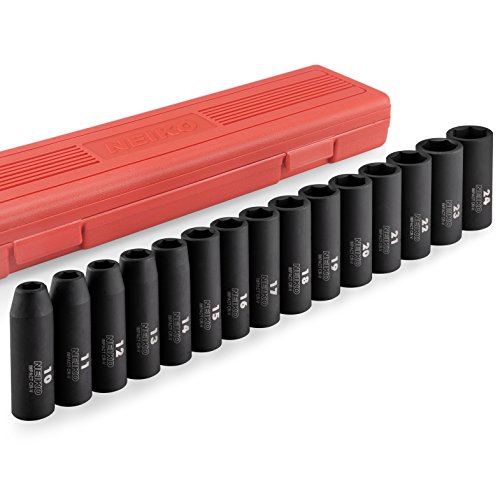 NEIKO 02474A 1/2” DRIVE DEEP IMPACT SOCKET SET, CR-V STEEL, 6-POINT | 15-PIECE SET | METRIC 10 - 24MM