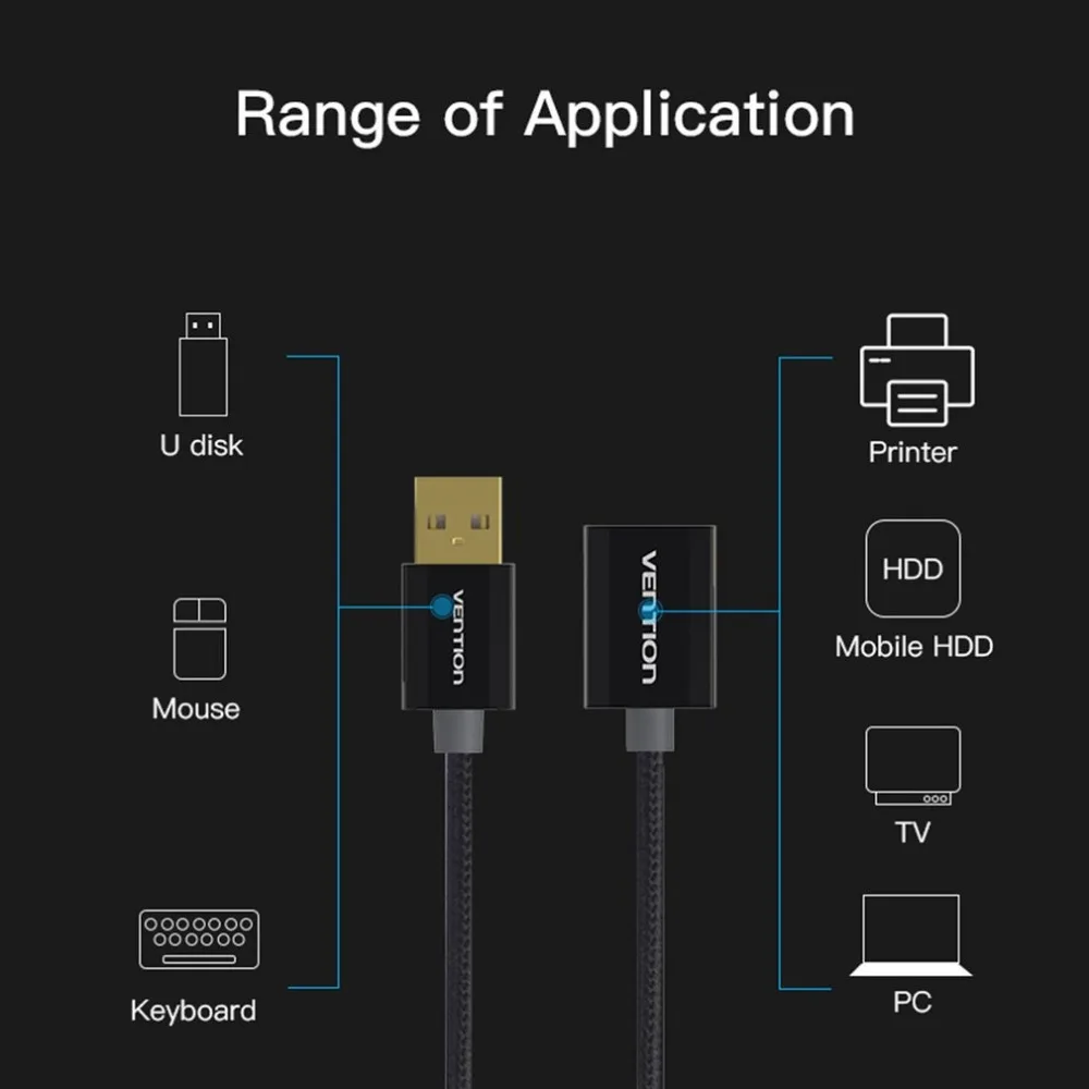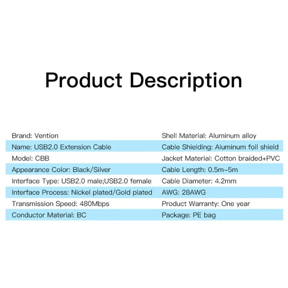Product Name:Vention USB 2.0 Male To Female Extension Cable