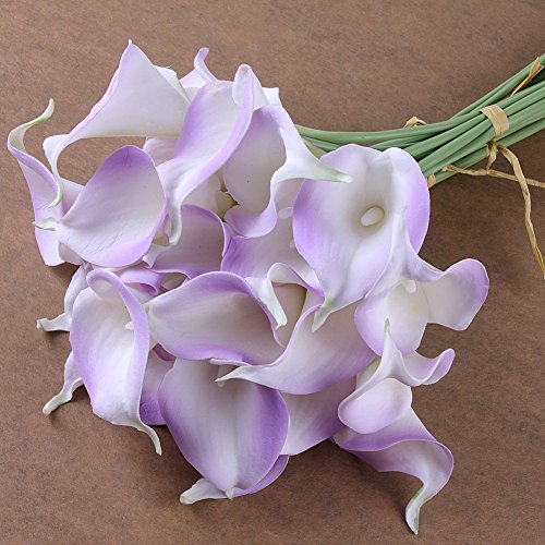 - Title : Coeus 13" Artificial Calla Lily Bridal Wedding Bouquet Latex Real Touch Pu Flower Bouquets (Purple and White , 20pcs)