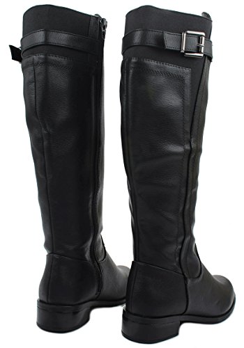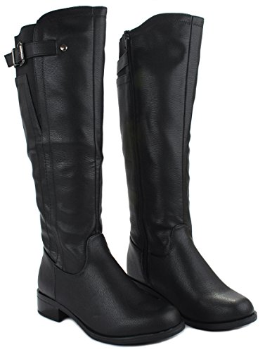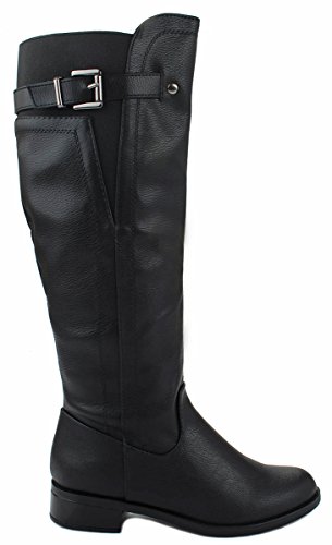 Binding : Apparel Product Description Step out in style with these superb knee high riding boots! Featuring a round toe, a leatherette upper, buckle strap design at shaft, stitching design, an stretch lycra back provides more flexibility. Finished with a lightly cushioned insole and a warm fabric lining for extra coziness and comfort, and a full side zipper closure for easy on/off. Perfect with any jeans or leggings. Product by Soda. 0