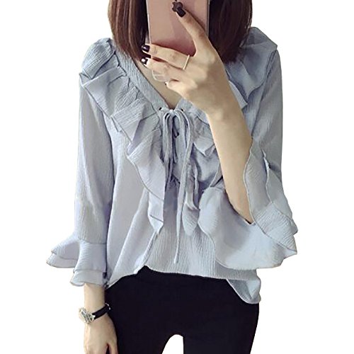 -. Title : 長袖 七分袖 レディース トップス ブラウス フリル襟 きれいめ ライトブルー LL 3L 4L 5L 大きいサイズ