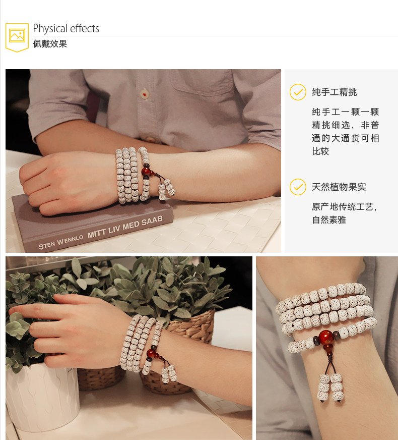 星月菩提子正月108颗干磨顺白本命年佛珠手链手串项链男女