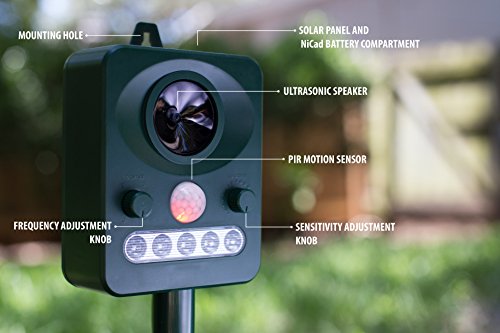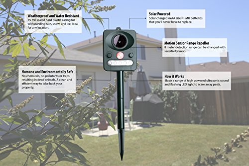 Ultrasonic Pest Repeller Outdoor Motion Activated Solar Powered Electronic Animal Repellent Kit by Hoptopper