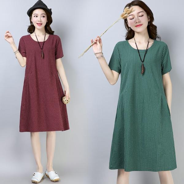 淡いストライプ柄が涼し気な印象のワンピースです。