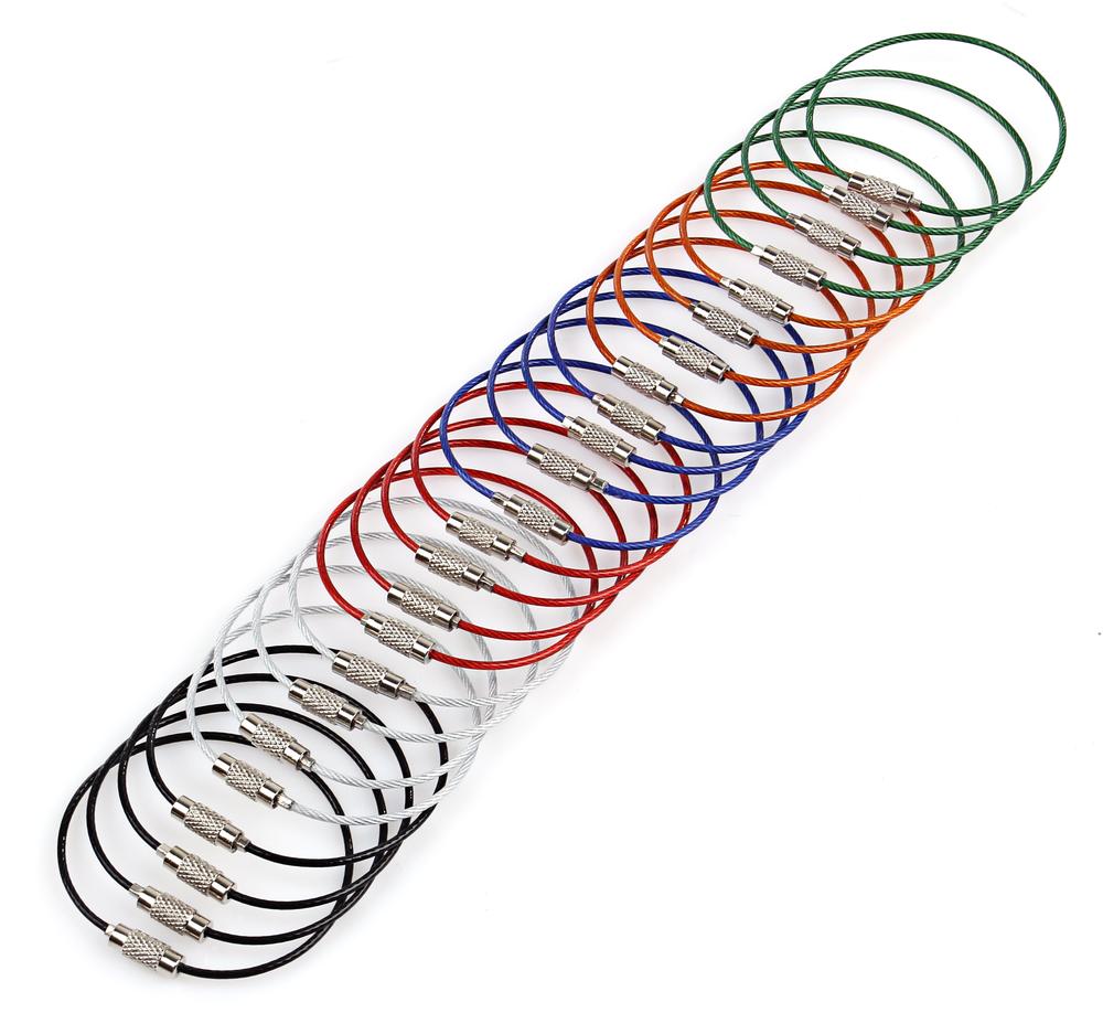 【24点セット】 カラフル ネジ式 ワイヤー キーリング