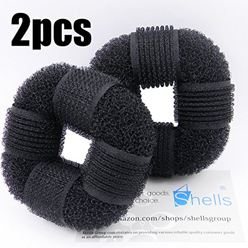 Shells 2PCS Black Beauty Buns Former Round Twist Ring Shaper Magic Hair Styling Tool Donut Doughnut Ring Styling Mesh Chignon Bun Maker Hair Curler...