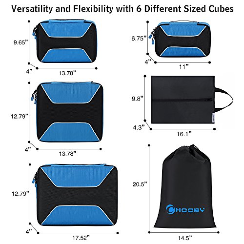 -. Feature : *YKK DOUBLE ZIPPERS. Made From High Quality Water Resistant Material with to Withstand the Wear and Tear of Traveling.Each Packing Cube Has A Handle to Help Carrying Your Lage / *4 INCH DEEP the Design Allows You to Fit All the Clothes You Need. Our Laundry Bag is Included to Help Separate your Dirty Clothes at the End of the Trip / *SHOES BAG :2 Pairs of Specifically Heels or Men's Hiking Shoes and Sandals Can be Packed in Bigger Shoes Bags. / *6 SET PACKING CUBES - Extra Large( 17.52" X 12.79" X 4") /Large (13.78" X 12.79" X 4") /Medium (13.78"x9.65"x4") /Small (11" X 6.75" X 4")/Shoe Bag(16.5" X 10.2" X 5.5")Laundry Bag(20.5" X 14.5") / *AVOID OVERWEIGHT CHARGES - Your 6 Piece Set Fits Like a Glove Into Most Airline Carry-on Suitcases, Tote, Weekender, Backpacks and Duffel Bags. Great Way To Keep Organized for FAMILY Breaks, BUSINESS Travel, BACKPACKING, CAMPING, HIKING, RV, CRUISE Holidays & SADDLEBAGS. Take 1 Cube with You as a Carry-on Item to Reduce Weight on Checked-in Lage.
