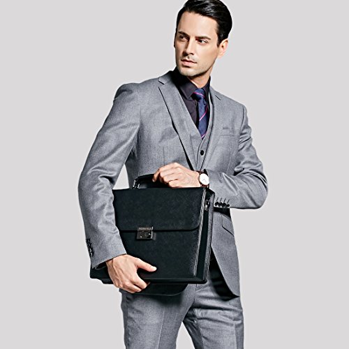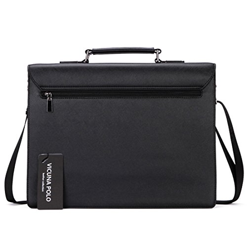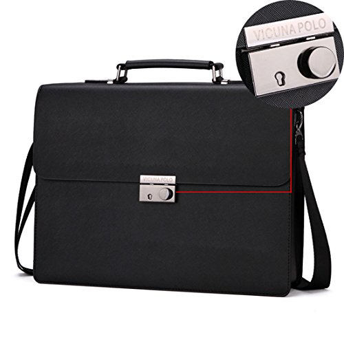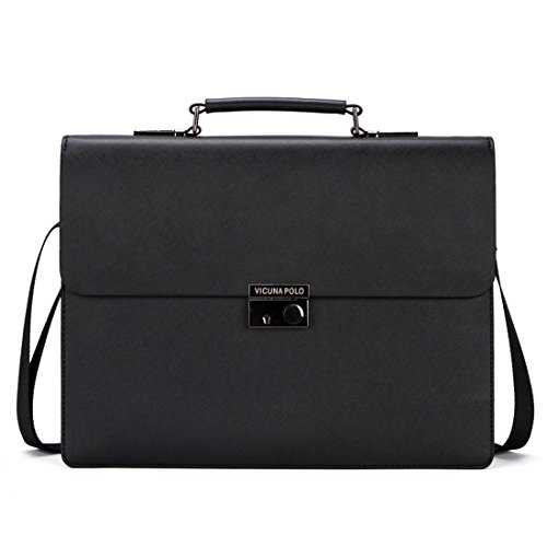 -. Brand : VICUNA POLO -. Color : black -. Department : mens -. EAN : 0714874457203 -. Feature : Material: high quality PU leather / Dimension: 14.96* 11.42 * 3.15inches (38*29*8cm) / Adjustable nice shoulder straps (appr.83-152cm) / 3 * main pockets, 1* front pocket, 1* zip pocket,can hold your comptuer books materials / If you want to open the bag please hold down the button and push it to right. -. ProductGroup : Apparel -. ProductTypeName : LAGE -. Size : large -. Title : VICUNA POLO Bussiness Men's Briefcases Bag Shoulder Bag for Men Laptop Handbag -. UPC : 714874457203
