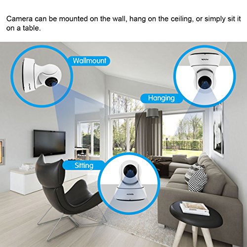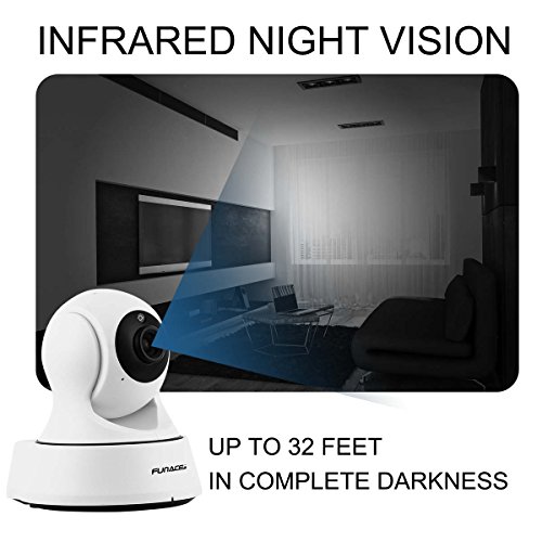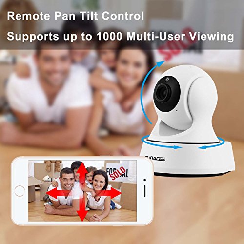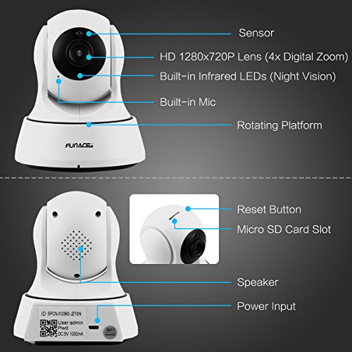 -. Feature : Full HD High Definition WiFi Camera with Motion and Sound Detection (32GB Card Included) / Easy Installation - Quick Setup via iPhone or Android App (installation manual available for download below) / Main Features: IR Night Vision (32FT), Two-Way Audio Chat, Stream Live/Recorded Video, Motion Detection Alarm, Sound Detection Alarm / Remote Control via Smart Phone: Pan/Tilt: Horizontal 340°; Vertical 90°, 4x Digital Zoom. Supports up to 1000 Simultaneous Remote Connections / Usage: IP Camera, WiFi Security Cameras, Wireless Webcam, Surveillance & Security Recorder, Pet Camera, Nanny Cam, Baby Monitoring Camera