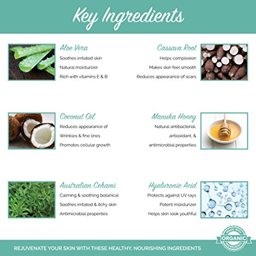 - PH BALANCED WITH NEW ZEALAND MANUKA HONEY - GoodOnYa Face Wash Cleanser and Makeup Remover is a natural organic formulation which makes it a great alternative to soap - with soothing and cleansing aloe vera and manuka honey. The Best Facial Product for Blackheads, Acne, dry or oily skin. Safe for Sensitive Skin - Organic Aloe Vera, Manuka Honey and Coconut oil help us create the most amazing face wash you have ever used!