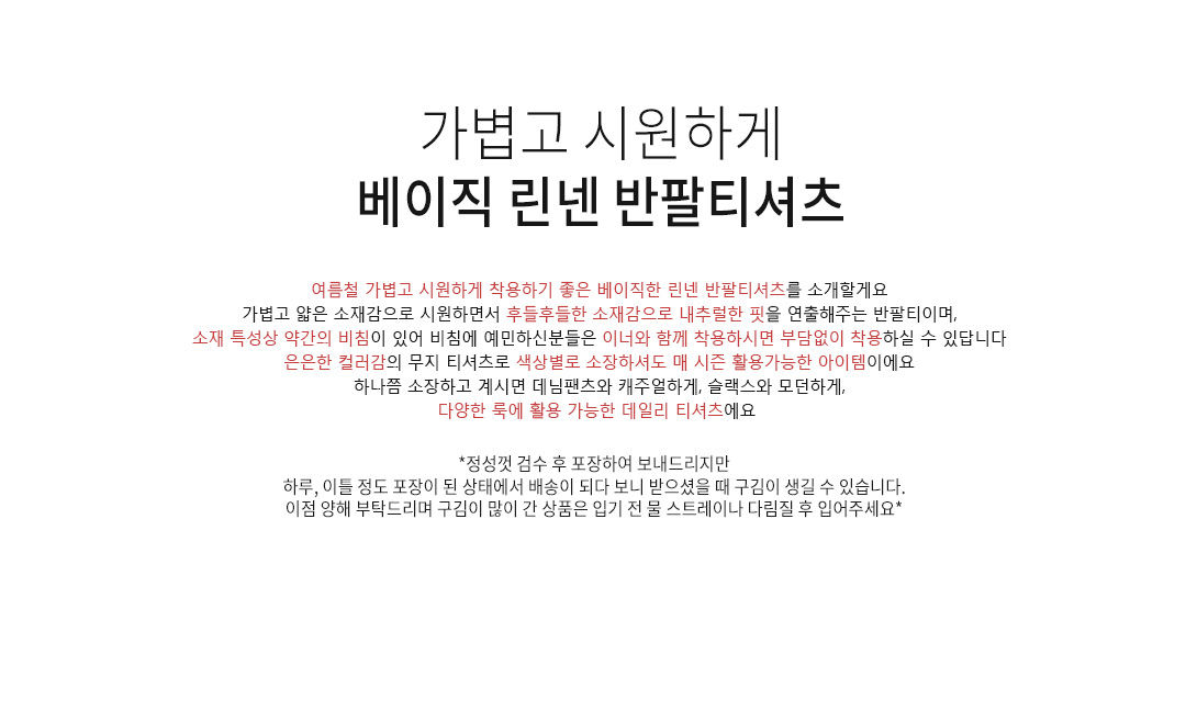 | 소재(Material) | 린넨(linen/)55%+레이온(rayon/)45% | |||