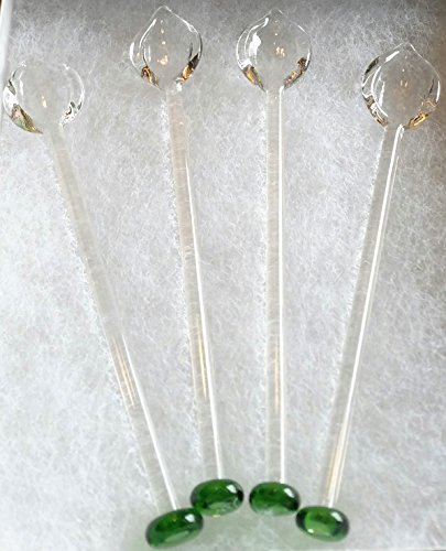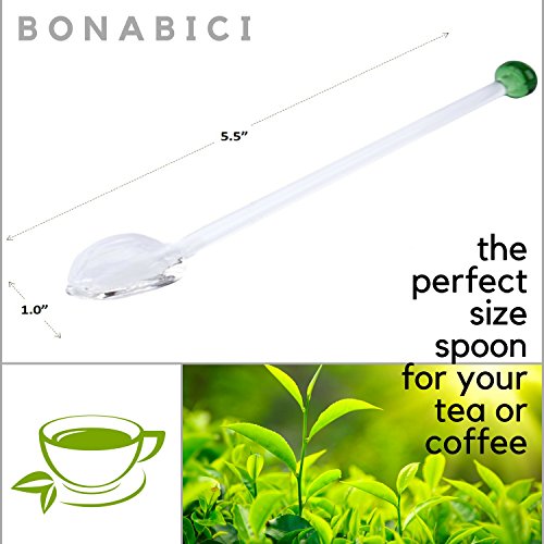 BONABICI Tea Spoons Set of 4 Exquisite Style Handcrafted Clear Tea Leaf Glass Spoons, Heat Resistant Borosilicate Glass, Coffee spoons, Stirring Spoons. 5.5" long. USA Made