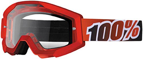 -. Feature : Official 100% Goggles Product. / Frame Color: Reds / Material: Plastic / Lens Color: Clear / Change your perception of what to expect from a $30 goggle. With the Strata, we set out to redefine the standards for what an entry-level goggle should be.