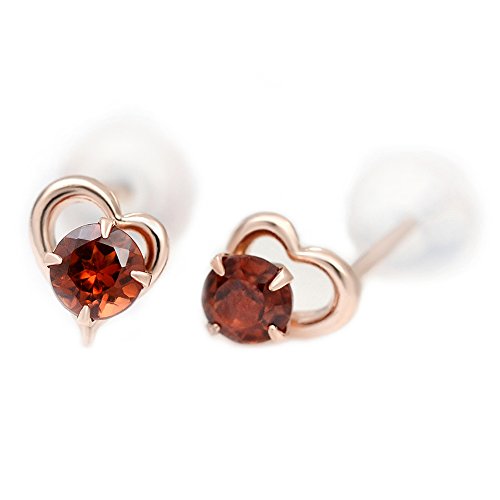 -. Title : K10 ピンクゴールド オープンハート ピアス スタッドピアス 両耳用ペア 1月誕生石ガーネット