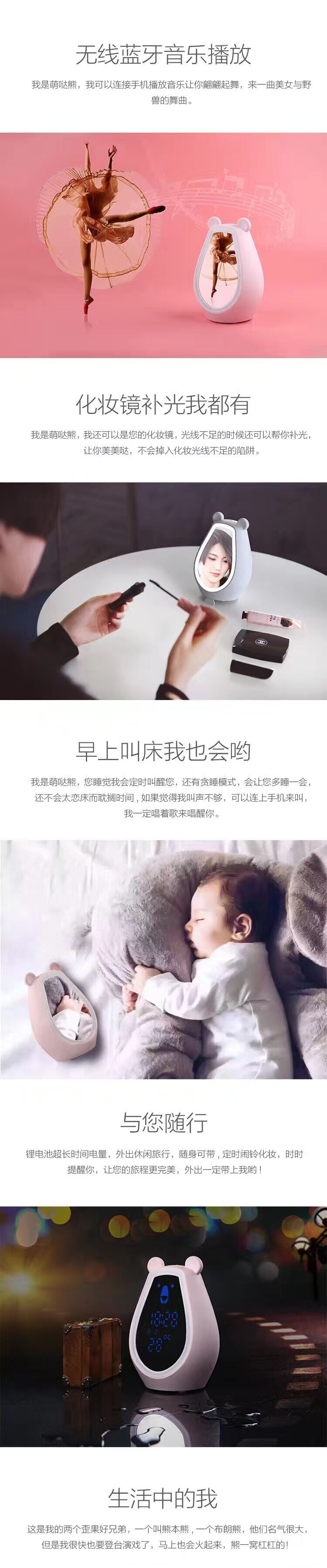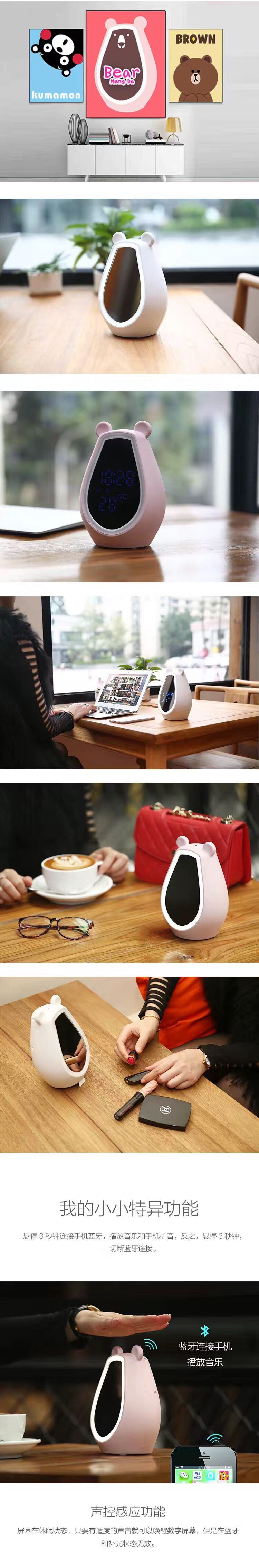 萌哒熊|无线蓝牙音箱|便携补妆化妆镜|智能闹钟|可爱创意手势控制