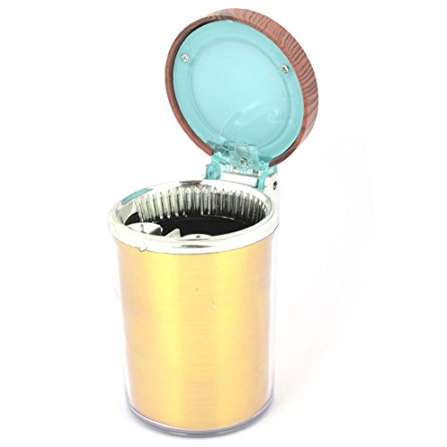 -. Title : uxcell 10cm Height Wood Grain Cap Car Blue LED Smokeless Ashtray Gold Tone