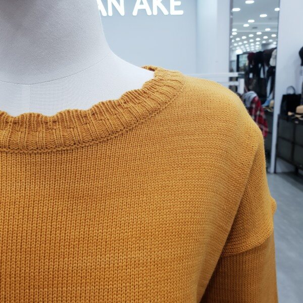 물결 네크라인이 포인트로들어가 밋밋함을 커버해준 짜임니트